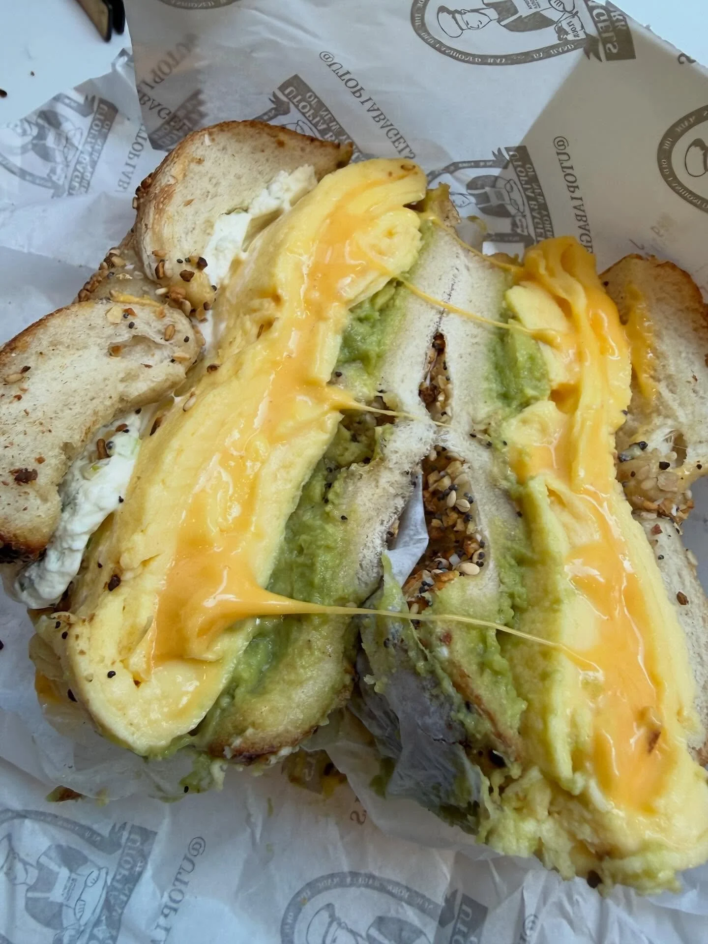 -the day starts with the best AEC (avocado, egg, cheese) everything bagel (with salt!) I’ve had in NYC yet! 🥯